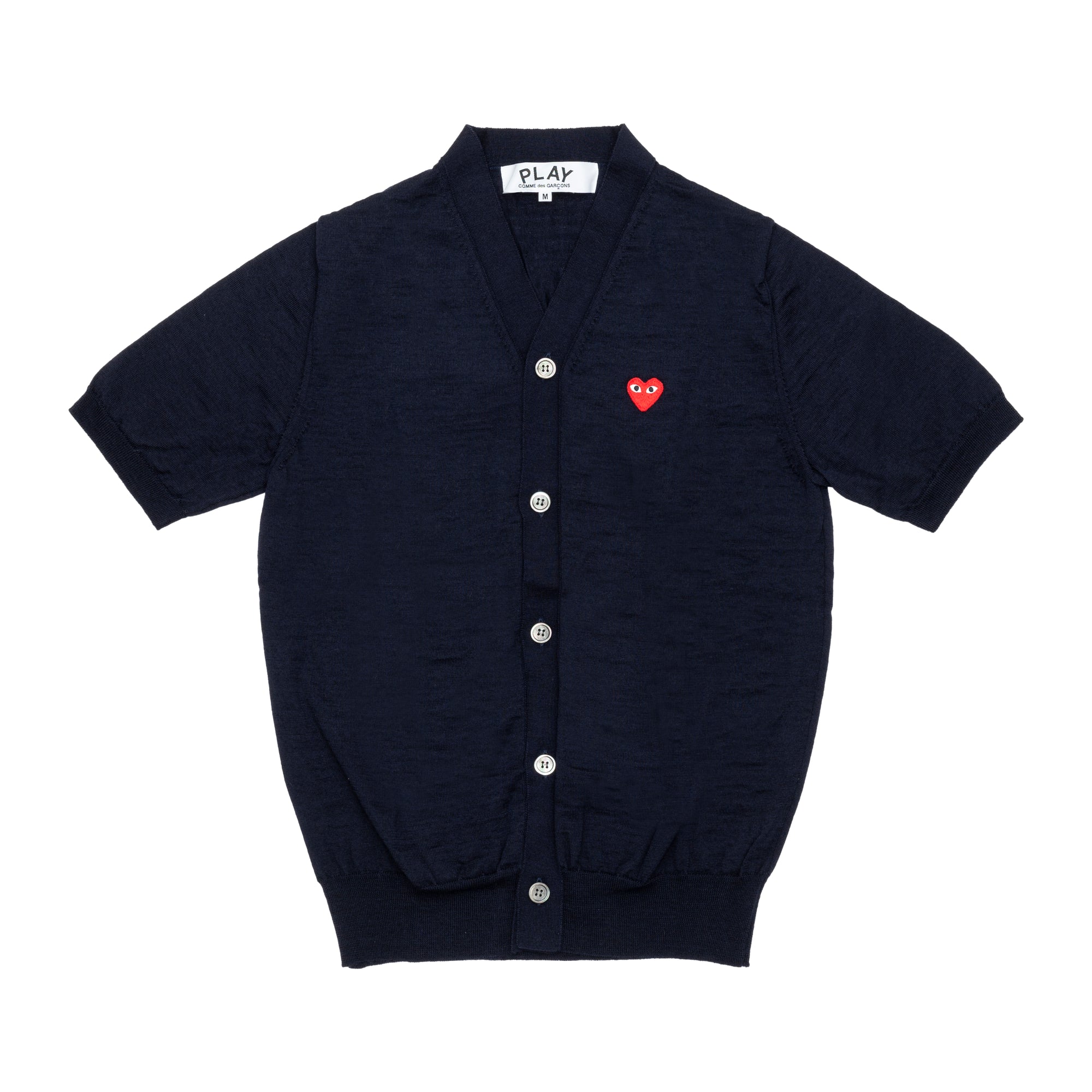 PLAY COMME des GARÇONS Round Neck Short Sleeve Cardigan With Red Medium Emblem Navy