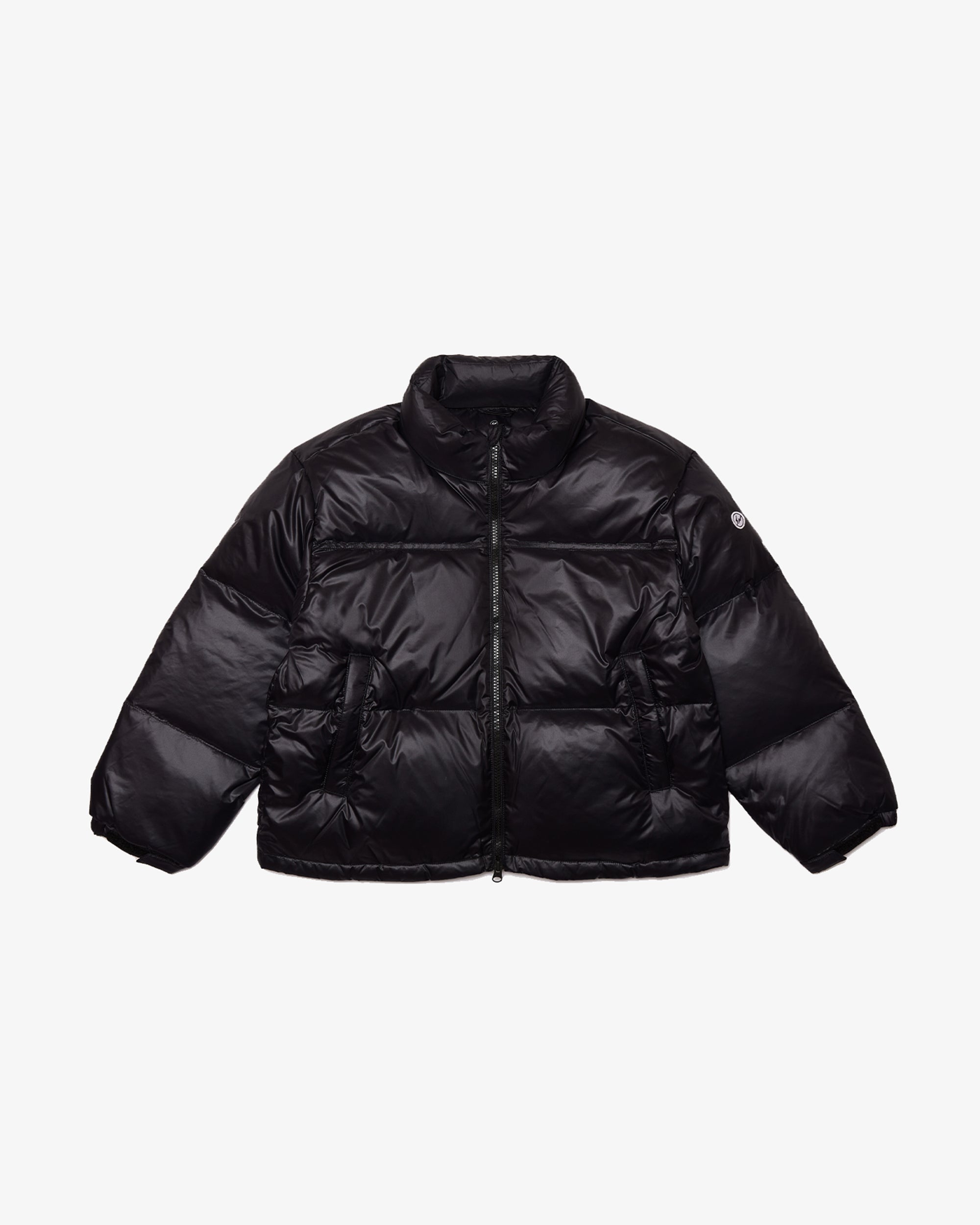 Black short down jacket with duck down padding Shell: Nylon 100%Lining: Polyester 100% Padding / Duck Down 80% / Feather 20%