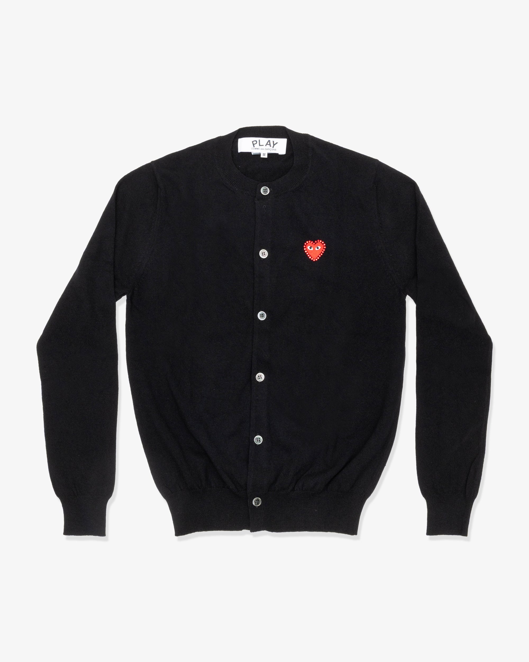 PLAY COMME des GARÇONS Round Neck Cardigan With Red Medium Emblem X Red Rhinestone Black