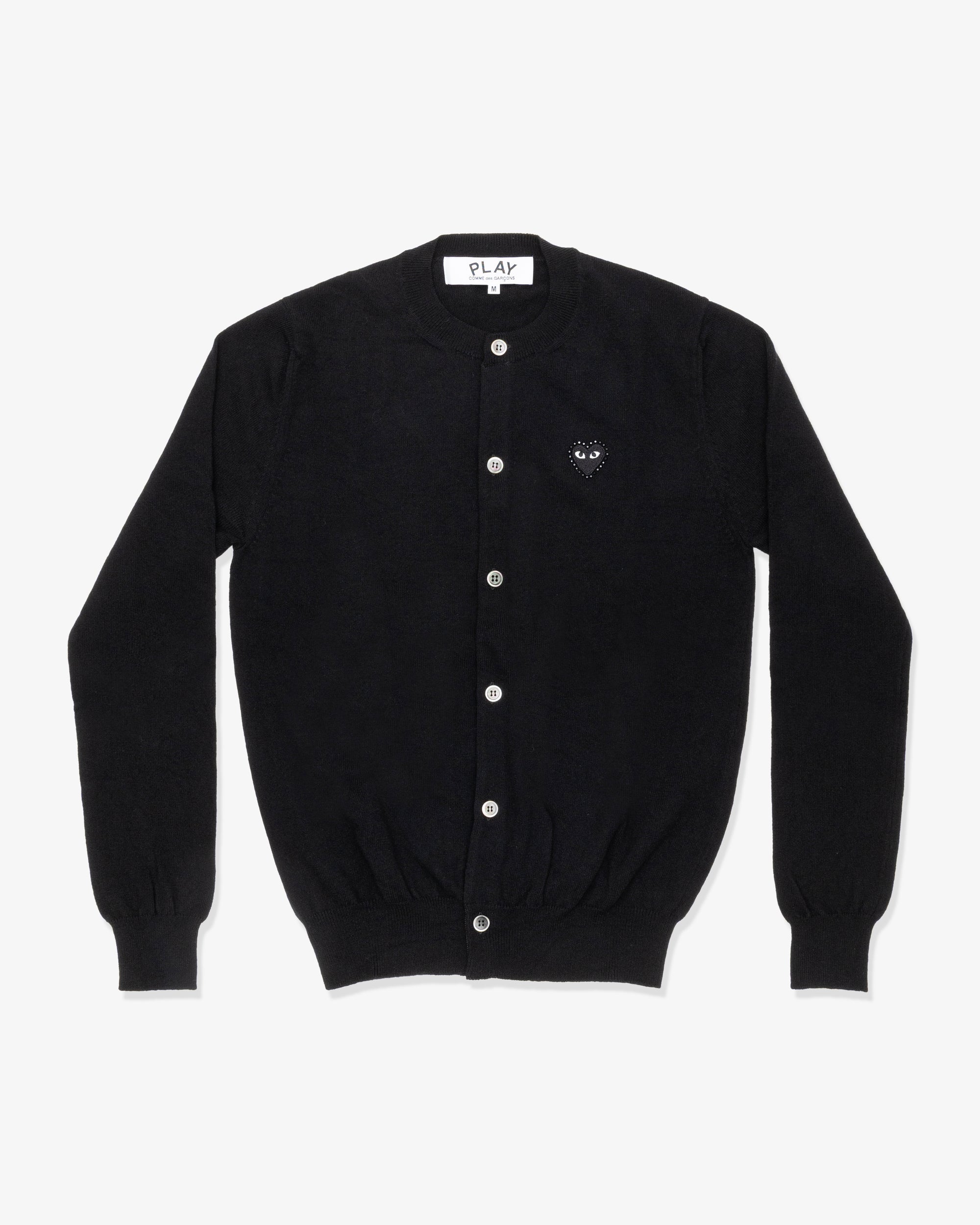 PLAY COMME des GARÇONS Round Neck Cardigan With Black Medium Emblem X Black Rhinestone Black