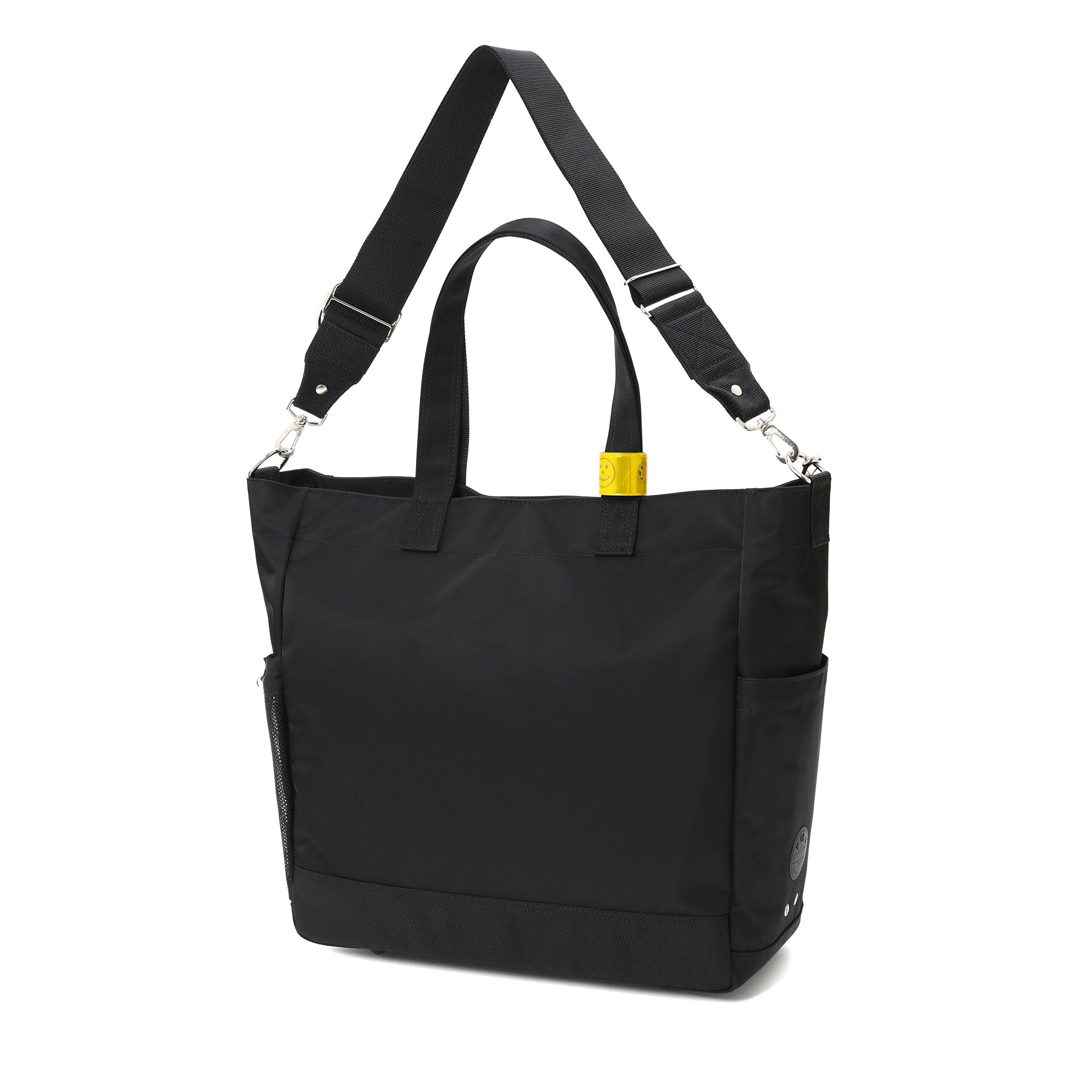 2WAYトートバッグ(L)は大容量のメイン収納部内に14inchのPCを収納できるクッション材入りのポケットを設けた、オン・オフどちらのシーンでも使いやすいアイテムです。ハンドルは肩掛けにも対応しています。サイドのポケットには600mlのペットボトルや折り畳み傘が収納できます。