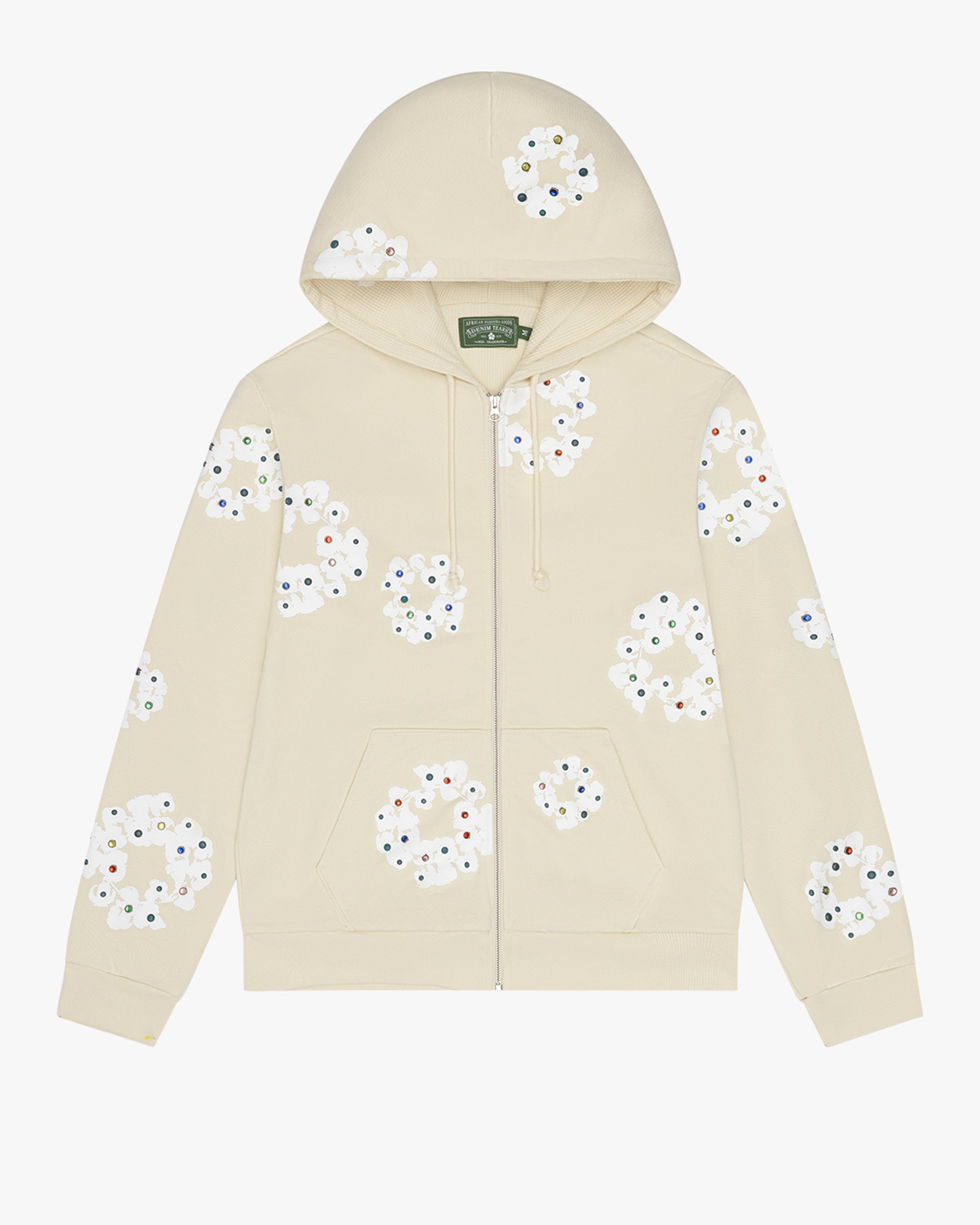 DENIM TEARS Rhinestone Wreath Hoodie Oatmeal