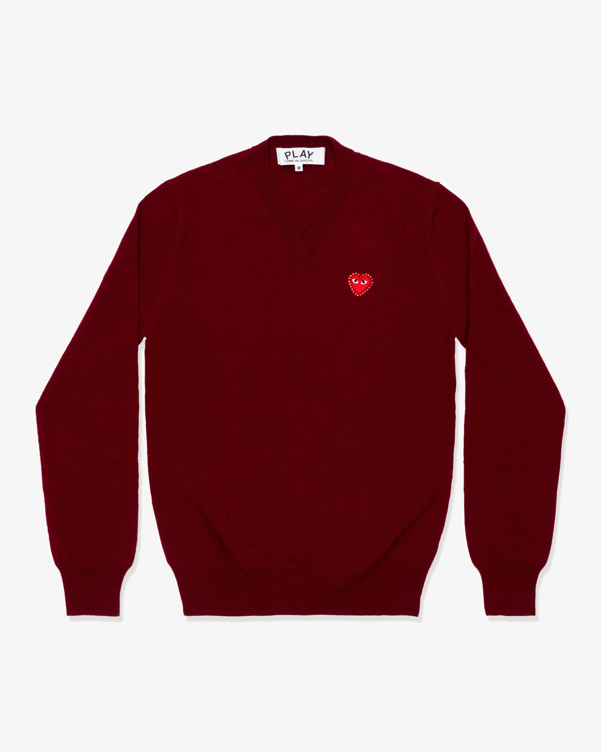 PLAY COMME des GARÇONS V-Neck Sweater With Red Medium Emblem X Red Rhinestone Burgundy