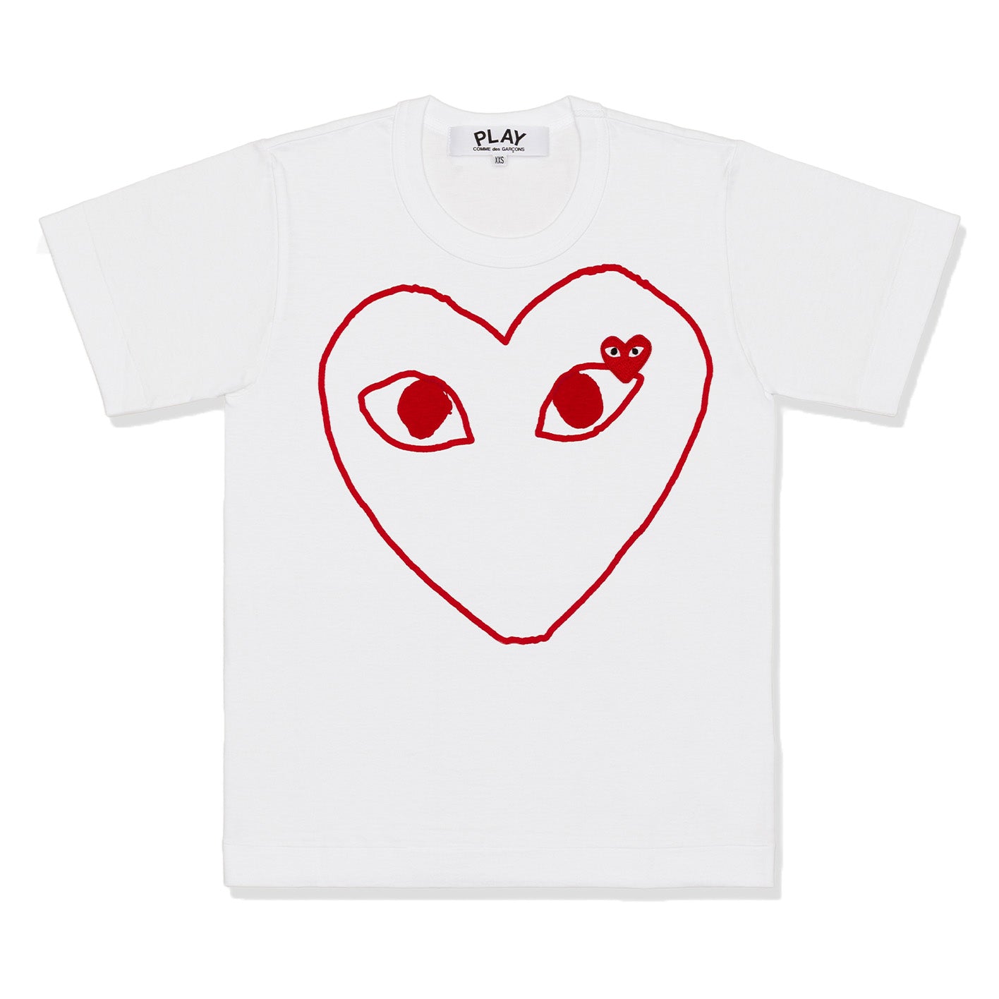 PLAY COMME des GARÇONS Printed Outlined Heart T-Shirt With Red Emblem White