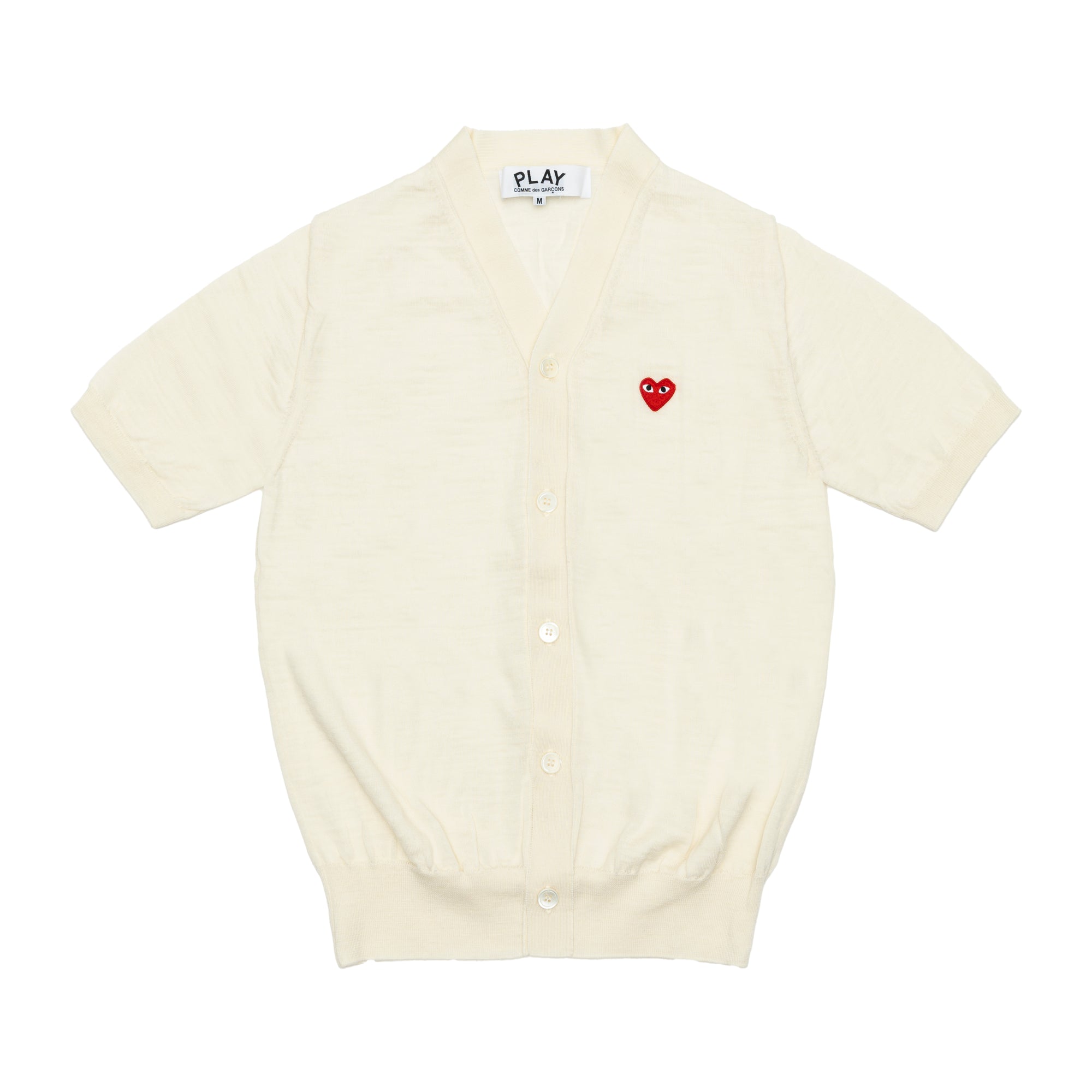 PLAY COMME des GARÇONS V-Neck Short Sleeve Cardigan With Red Medium Emblem Off White